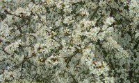 Flores: abundante floração branca de Março a Abril. As flores desabrocham antes das folhas, pequenas (1 a 1.5 cm), pedunculadas, solitárias ou geminadas; hermafroditas, com 5 pétalas glabras e brancas, raramente rosadas, numerosos estames com anteras vermelhas (20 a 25) e um estilete.